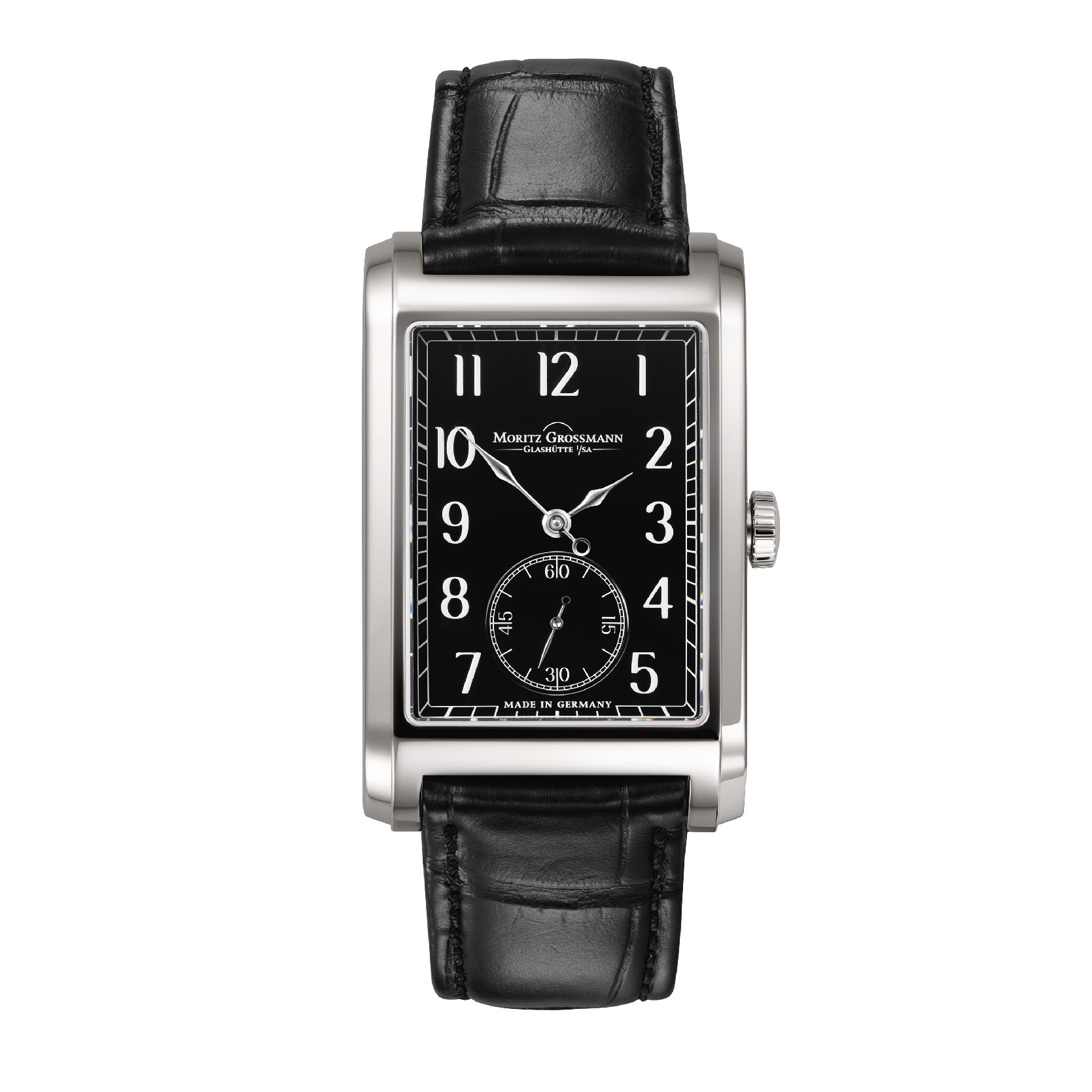 It is Grossmann’s first watch in this design variant that is particularly popular on the Japanese market. The new calibre 102.3 was specially designed for the rectangular movement shape with a small second scale at 6.00 o’clock and a central hour and minute display.