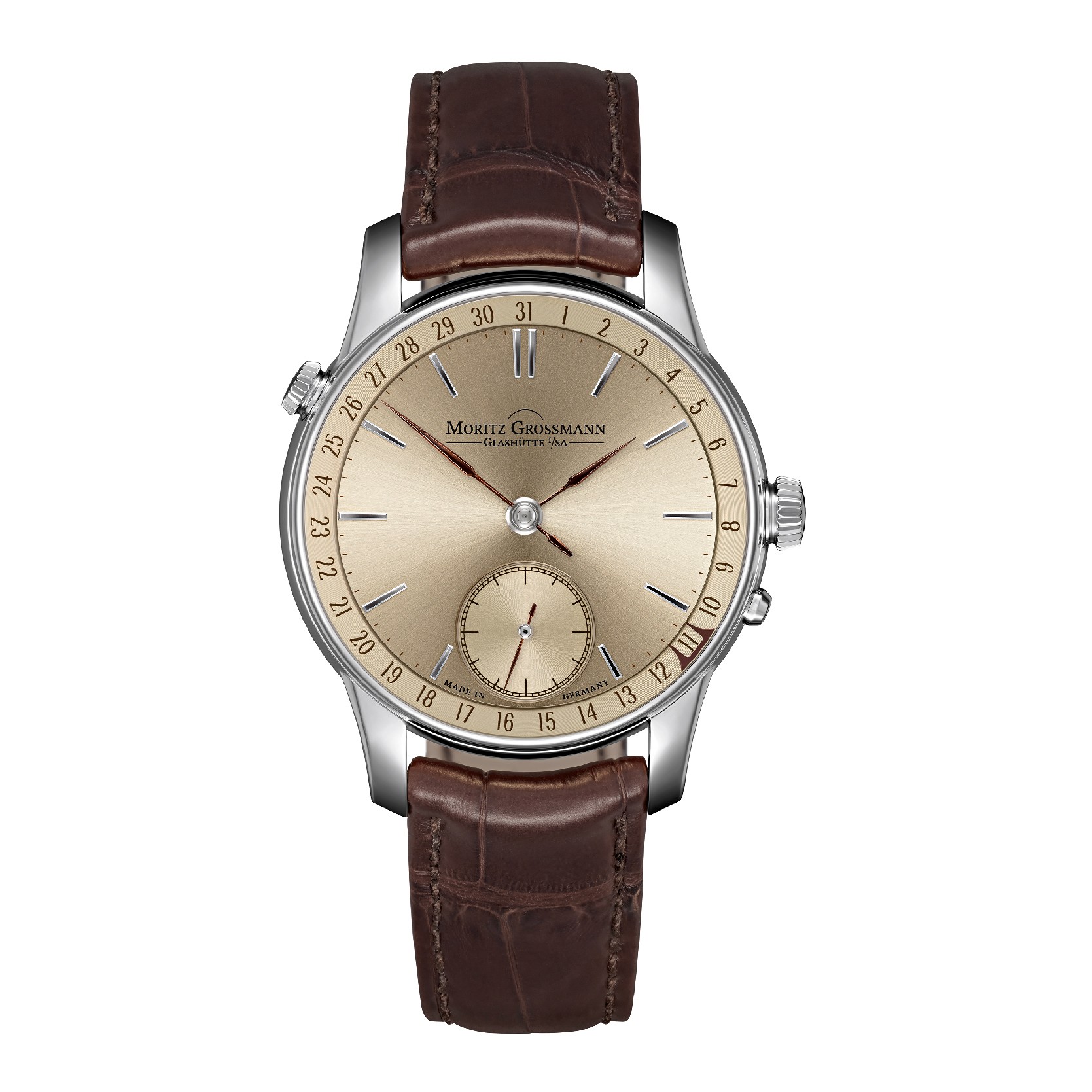 Apart from the exact time, what people want to know most when they look at their watches is the current date. So the date display ranks just behind the hour, minute, and seconds indications even though it is a comparatively recent development in the long history of horology. The first wristwatch with an analogue date was introduced in the early 20th century. Grossmann‘s watchmakers are taking their inspiration from this classic display type but have perceptibly evolved it: their jumping date is remarkably easy to use.