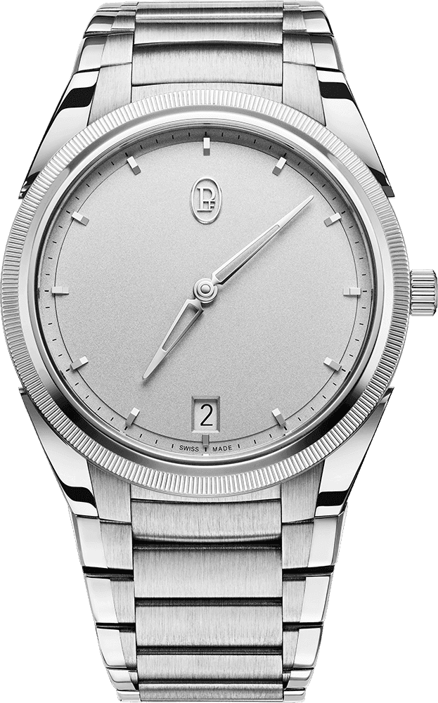 40 mm. The understated warm grey dial features a matte guilloché pattern, creating a sophisticated impression. A new variation of Parmigiani Fleurier's basic caliber PF703 has been born.