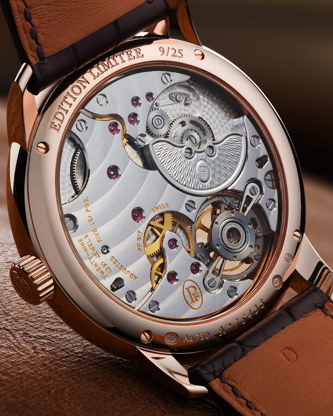 제네바의 또 다른 상징은 꼬뜨 드 제네브입니다. 제네바 스트라이프로도 알려진 장식 테크닉으로 19세기에 첫 등장했다고 알려지고 있습니다. 플레이트의 표면을 장식하는 테크닉이기 때문에 익숙한 테크닉이기도 하죠. 꼬뜨 드 제네브로 장식하는 방법은 다양하지만 하이엔드 워치에서는 회전하는 연마 도구에 플레이트를 비스듬하게 가져다 대고 천천히 밀어서 아름다운 선을 만들어 냅니다. 전통적인 가치에 중점을 두는 경우에는 핸드 메이드로 꼬뜨 드 제네브를 만들어 내기도 하죠. 스트라이프와 스트라이프가 이어지면 잔잔한 제네바 호수의 물결처럼 보이는 이 테크닉은 자세히 살펴보면 하이엔드 워치마다 미묘한 차이를 보여줍니다. 스프라이트의 너비, 깊이로 차이를 만들어 내곤 하죠. 이것에 따라 빛을 담거나 혹은 어두움을 담는 방법이 달라지게 되고, 결과적으로 각기 다른 느낌과 아름다움을 부여합니다.